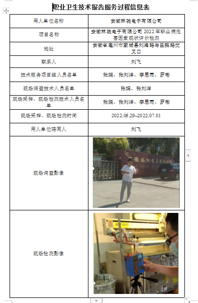 安徽林馳電子有限公司2022年職業(yè)病危害因素現(xiàn)狀評價