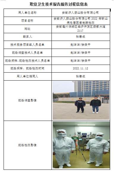 安徽濟人藥業股份有限公司2022年職業病危害因素定期檢測