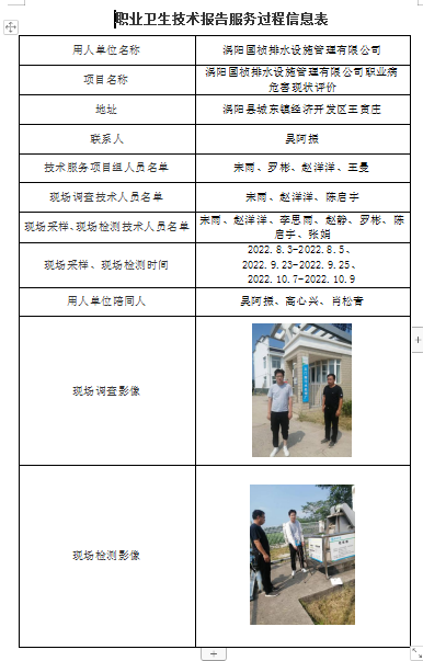 渦陽國禎排水設施管理有限公司職業(yè)病危害現(xiàn)狀評價
