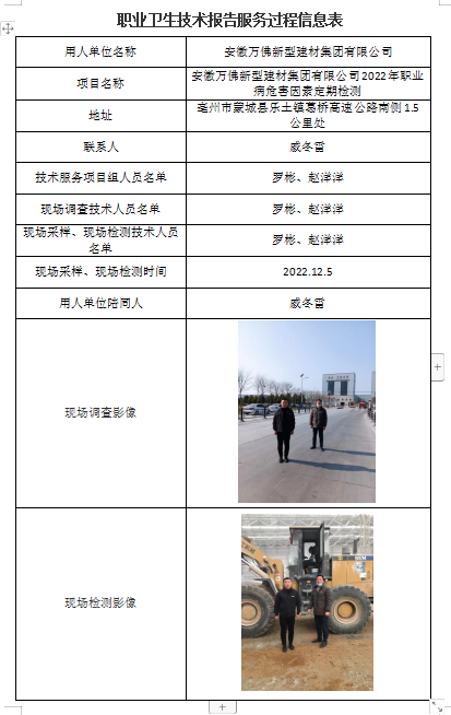 安徽萬佛新型建材集團有限公司2022年職業病危害因素定期檢測