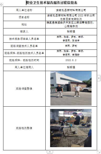 安徽弘昌新材料有限公司2022年職業(yè)病危害因素定期檢測