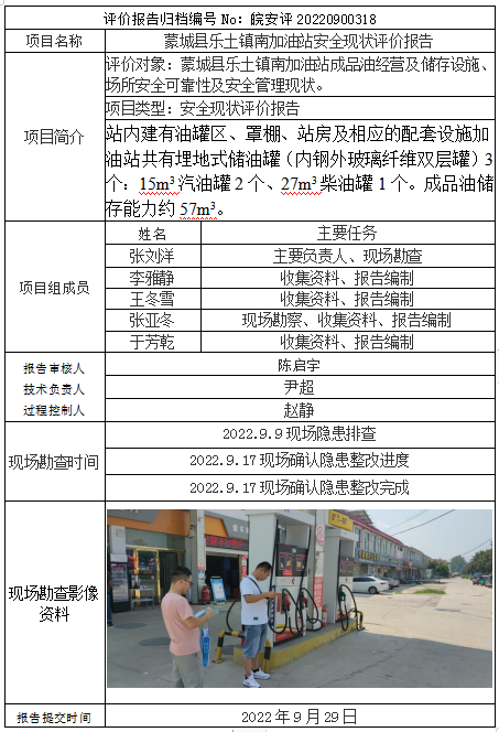 蒙城縣樂土鎮(zhèn)南加油站安全現(xiàn)狀評價報告