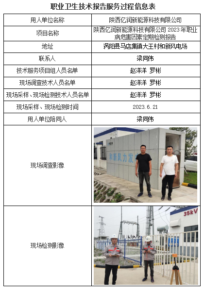 陜西億潤新能源科技有限公司2023年職業病危害因素定期檢測報告