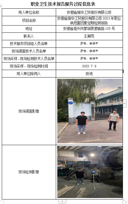 安徽省振華工貿股份有限公司2023年職業病危害因素定期檢測報告