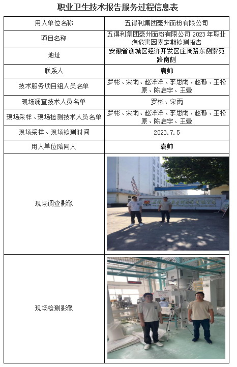 五得利集團(tuán)亳州面粉有限公司2023年職業(yè)病危害因素定期檢測(cè)報(bào)告