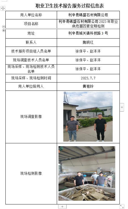 利辛縣錦盛石材有限公司2023年職業病危害因素定期檢測