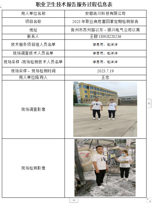 安徽吉川科技有限公司2023年職業病危害因素定期檢測報告