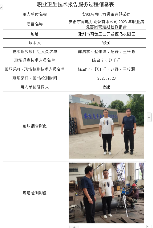 安徽東南電力設備有限公司2023年職業病危害因素定期檢測報告