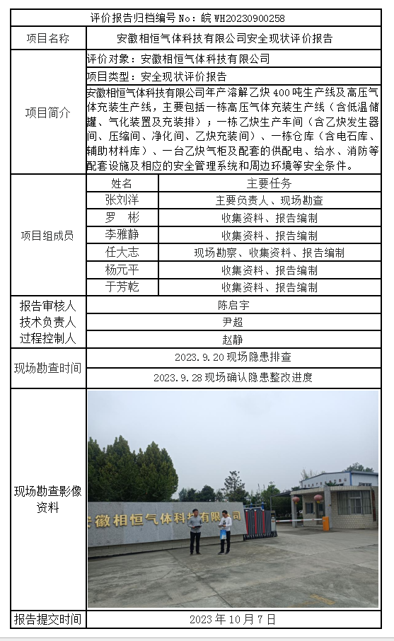 安徽相恒氣體科技有限公司安全現(xiàn)狀評(píng)價(jià)報(bào)告