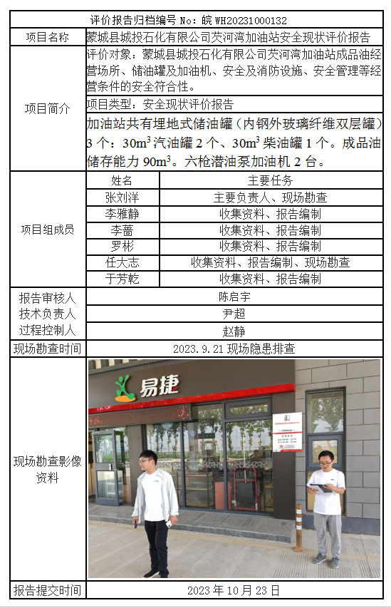 蒙城縣城投石化有限公司芡河灣加油站安全現(xiàn)狀評(píng)價(jià)報(bào)告