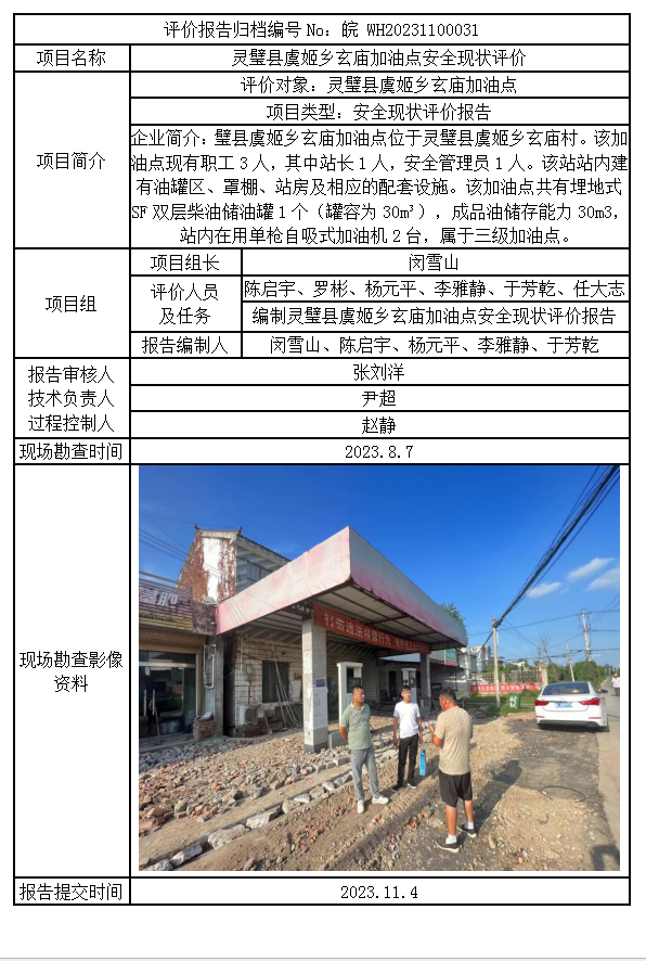 靈璧縣虞姬鄉(xiāng)玄廟加油點(diǎn)安全現(xiàn)狀評價(jià)