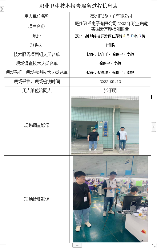 亳州訊滔電子有限公司2023年職業病危害因素定期檢測報告