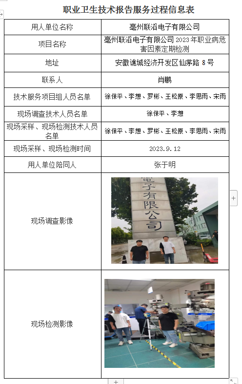 亳州聯(lián)滔電子有限公司2023年職業(yè)病危害因素定期檢測
