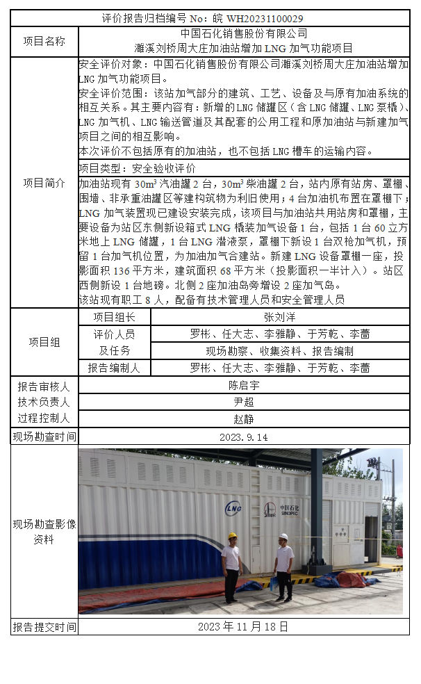 中國石化銷售股份有限公司 濉溪劉橋周大莊加油站增加LNG加氣功能項目