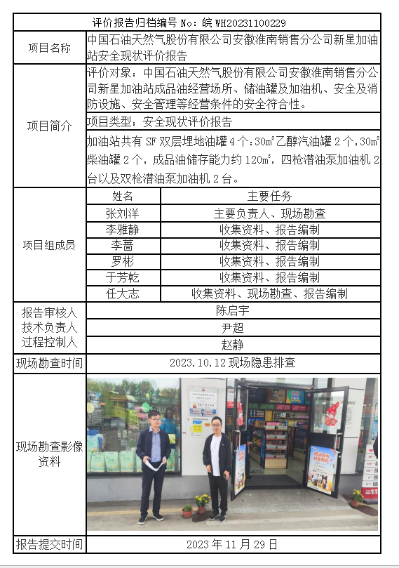 中國石油天然氣股份有限公司安徽淮南銷售分公司新星加油站安全現(xiàn)狀評價報告