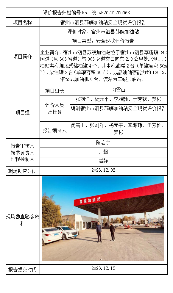 宿州市泗縣蘇皖加油站安全現(xiàn)狀評價(jià)報(bào)告
