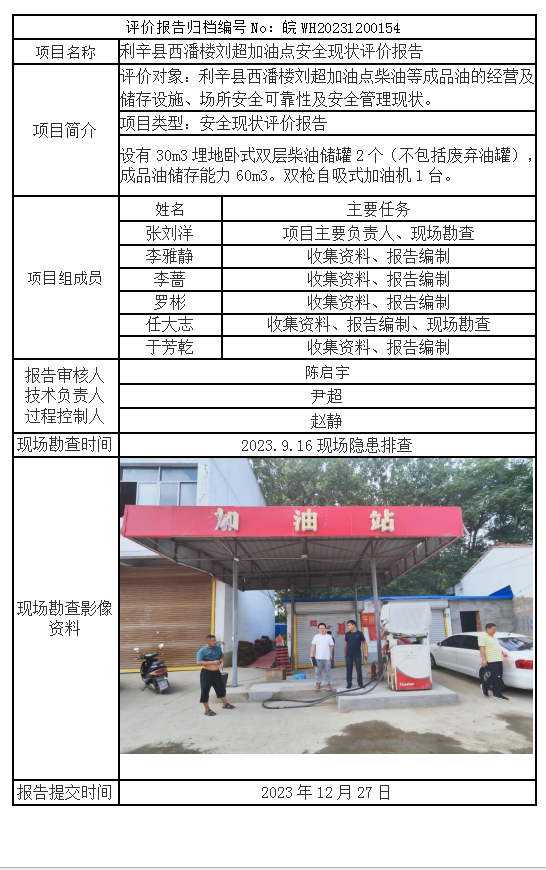 利辛縣西潘樓劉超加油點安全現(xiàn)狀評價報告