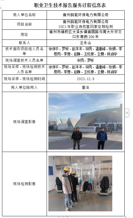 宿州皖能環保電力有限公司2023年職業病危害因素定期檢測