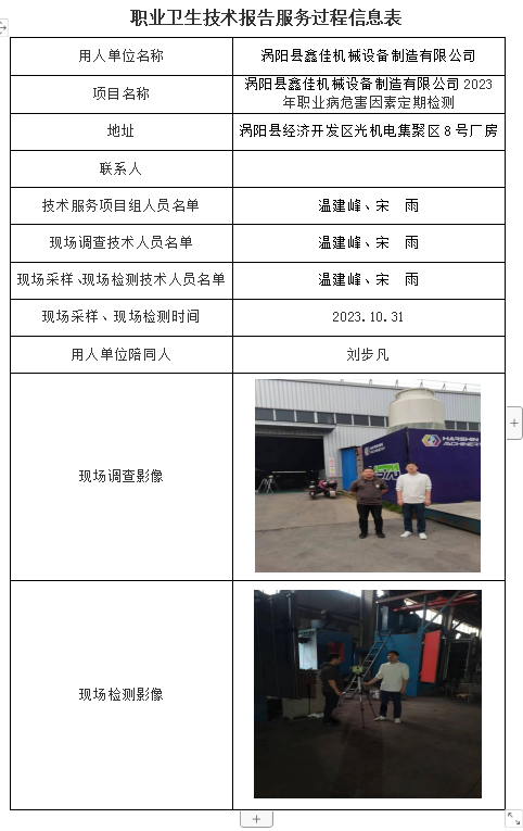 渦陽縣鑫佳機械設備制造有限公司2023年職業病危害因素定期檢測