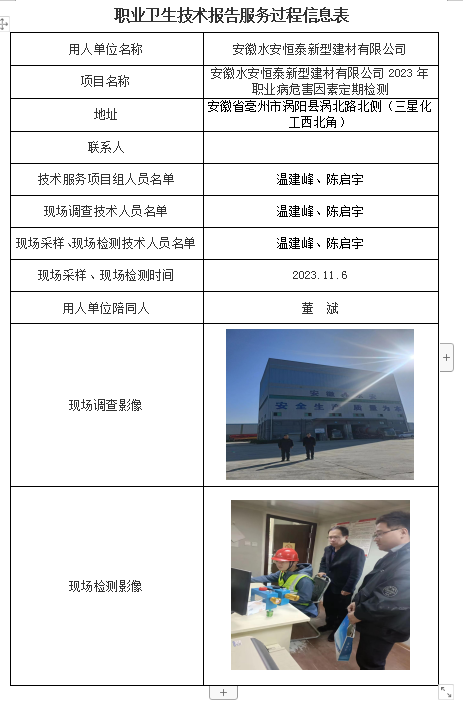 安徽水安恒泰新型建材有限公司2023年職業病危害因素定期檢測