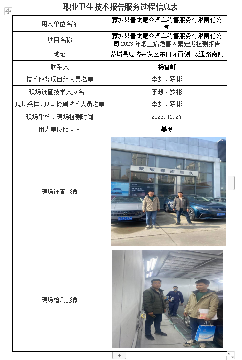 蒙城縣春雨慧眾汽車銷售服務有限責任公司2023年職業病危害因素定期檢測報告