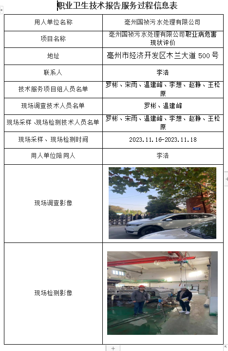 亳州國(guó)禎污水處理有限公司職業(yè)病危害現(xiàn)狀評(píng)價(jià)