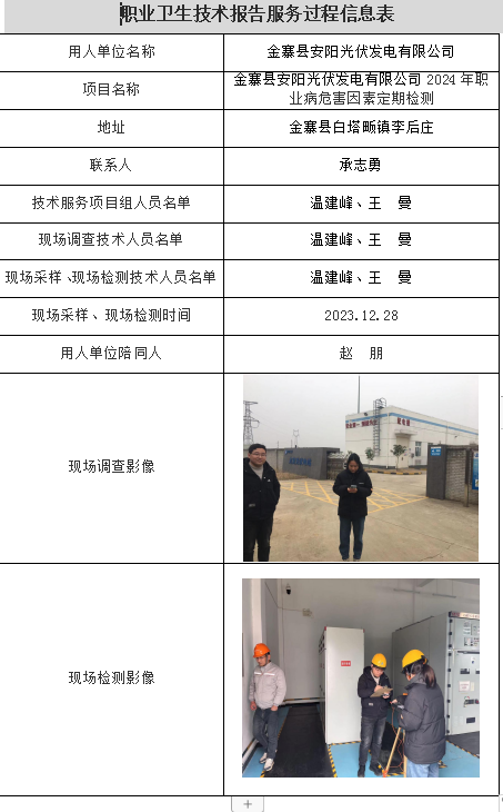 金寨縣安陽光伏發電有限公司2024年職業病危害因素定期檢測