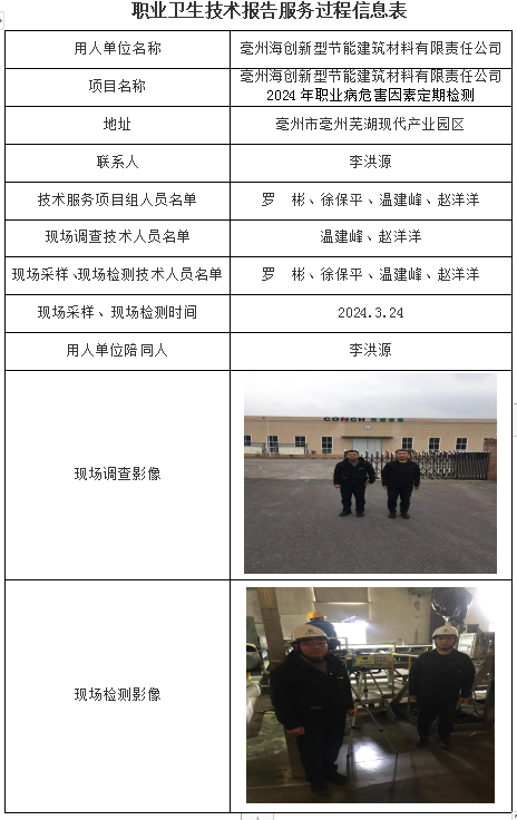 亳州海創(chuàng)新型節(jié)能建筑材料有限責(zé)任公司 2024年職業(yè)病危害因素定期檢測