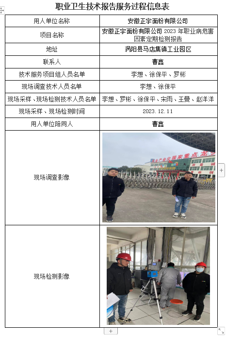 安徽正宇面粉有限公司2023年職業病危害因素定期檢測報告