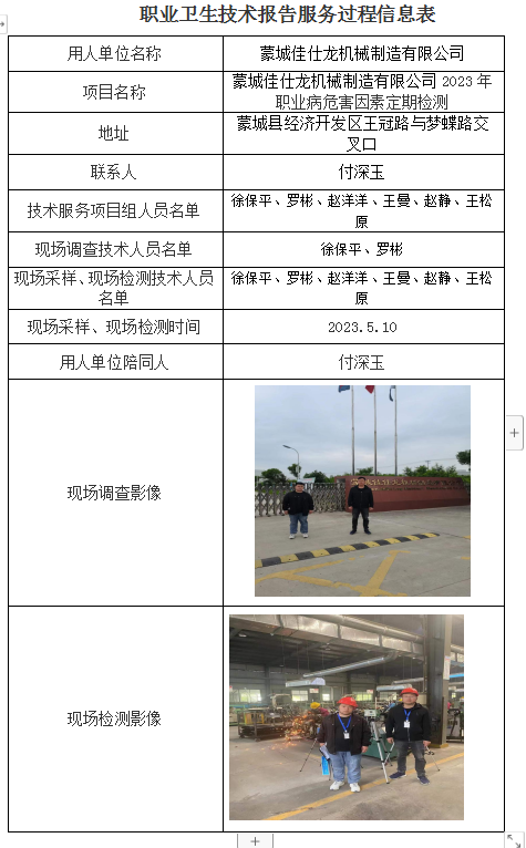 蒙城佳仕龍機(jī)械制造有限公司2023年職業(yè)病危害因素定期檢測(cè)
