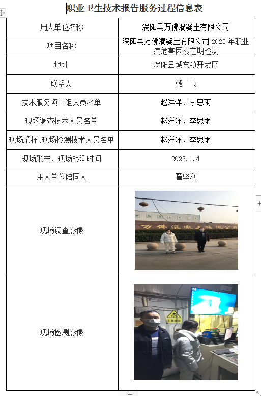 渦陽縣萬佛混凝土有限公司2023年職業病危害因素定期檢測