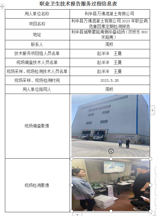 利辛縣萬佛混凝土有限公司2023年職業病危害因素定期檢測報告