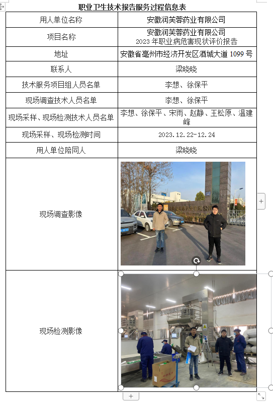 安徽潤(rùn)芙蓉藥業(yè)有限公司2024年職業(yè)病危害現(xiàn)狀評(píng)價(jià)報(bào)告