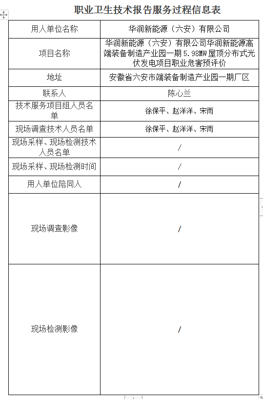 華潤新能源(六安)有限公司華潤新能源高端裝備制造產業園一期5.98MW屋頂分布式光伏發電項目職業危害預評價