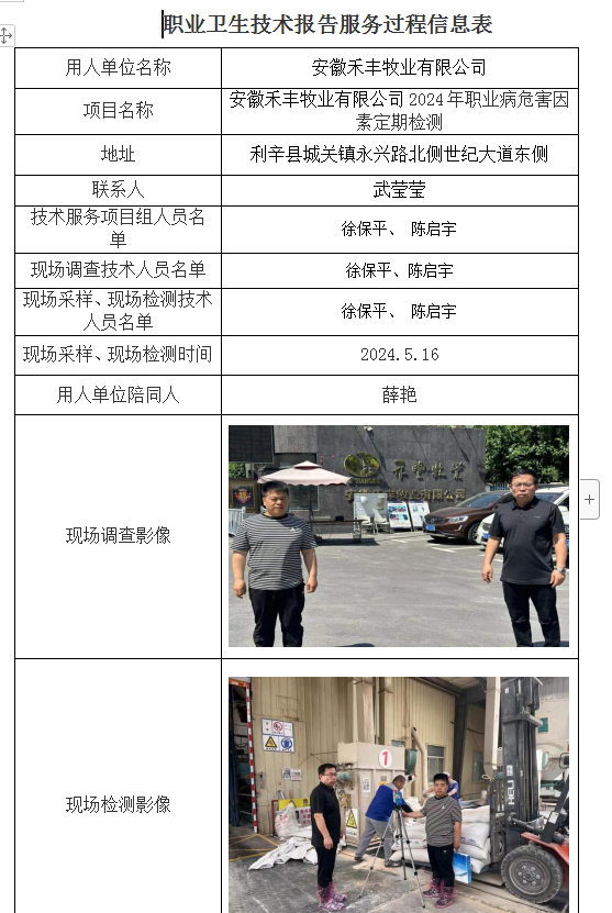 安徽禾豐牧業(yè)有限公司2024年職業(yè)病危害因素定期檢測