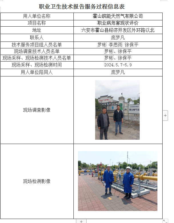 霍山皖能天然氣有限公司職業(yè)病危害現(xiàn)狀評價