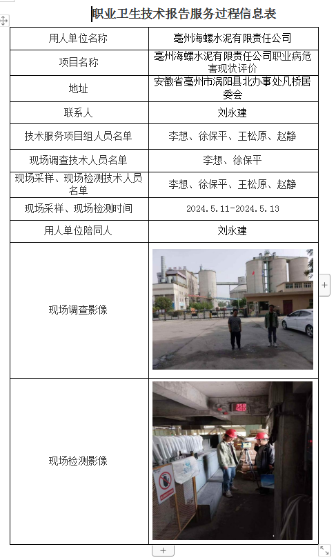 亳州海螺水泥有限責(zé)任公司職業(yè)病危害現(xiàn)狀評(píng)價(jià)