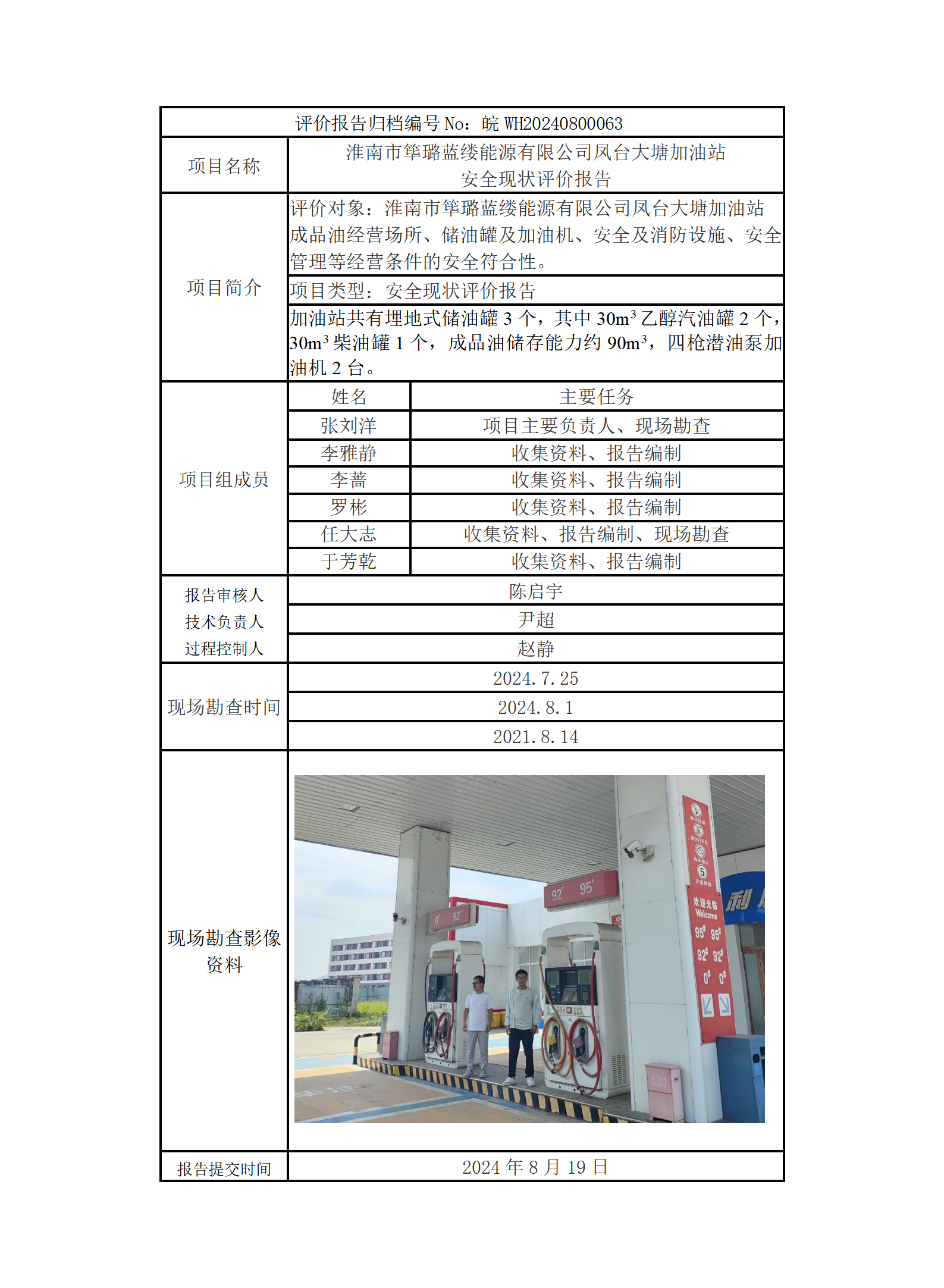 淮南市篳璐藍縷能源有限公司鳳臺大塘加油站 安全現狀評價報告