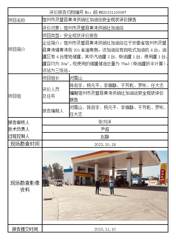 宿州市靈璧縣黃灣供銷社加油站安全現(xiàn)狀評價(jià)報(bào)告