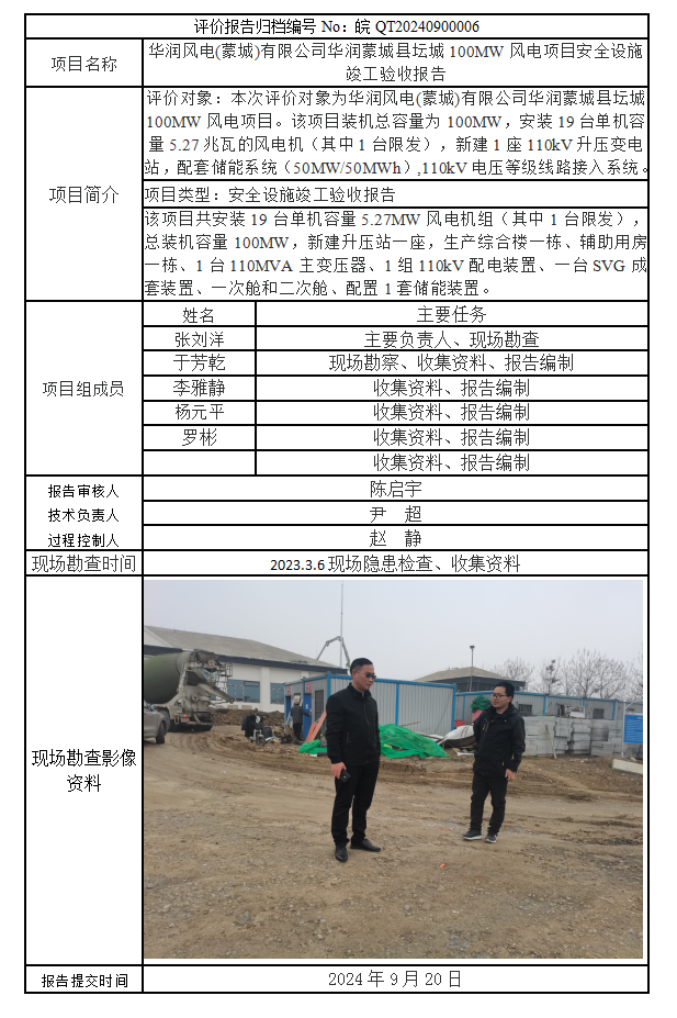 華潤(rùn)風(fēng)電(蒙城)有限公司華潤(rùn)蒙城縣壇城100MW風(fēng)電項(xiàng)目安全設(shè)施竣工驗(yàn)收?qǐng)?bào)告