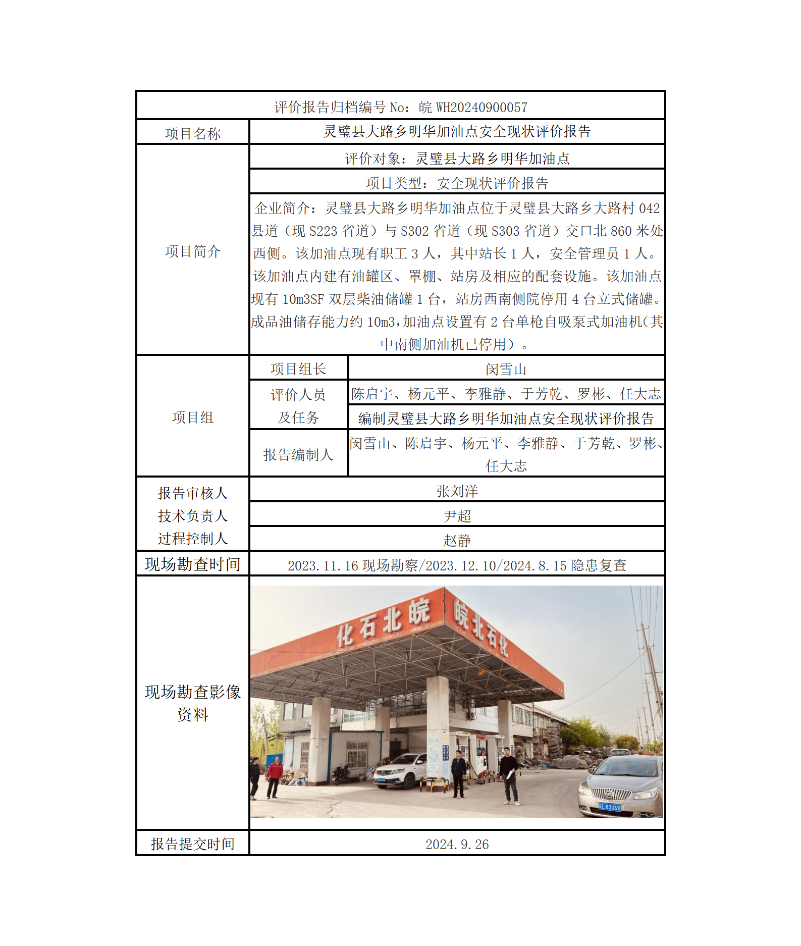 靈璧縣大路鄉(xiāng)明華加油點(diǎn)安全現(xiàn)狀評(píng)價(jià)報(bào)告