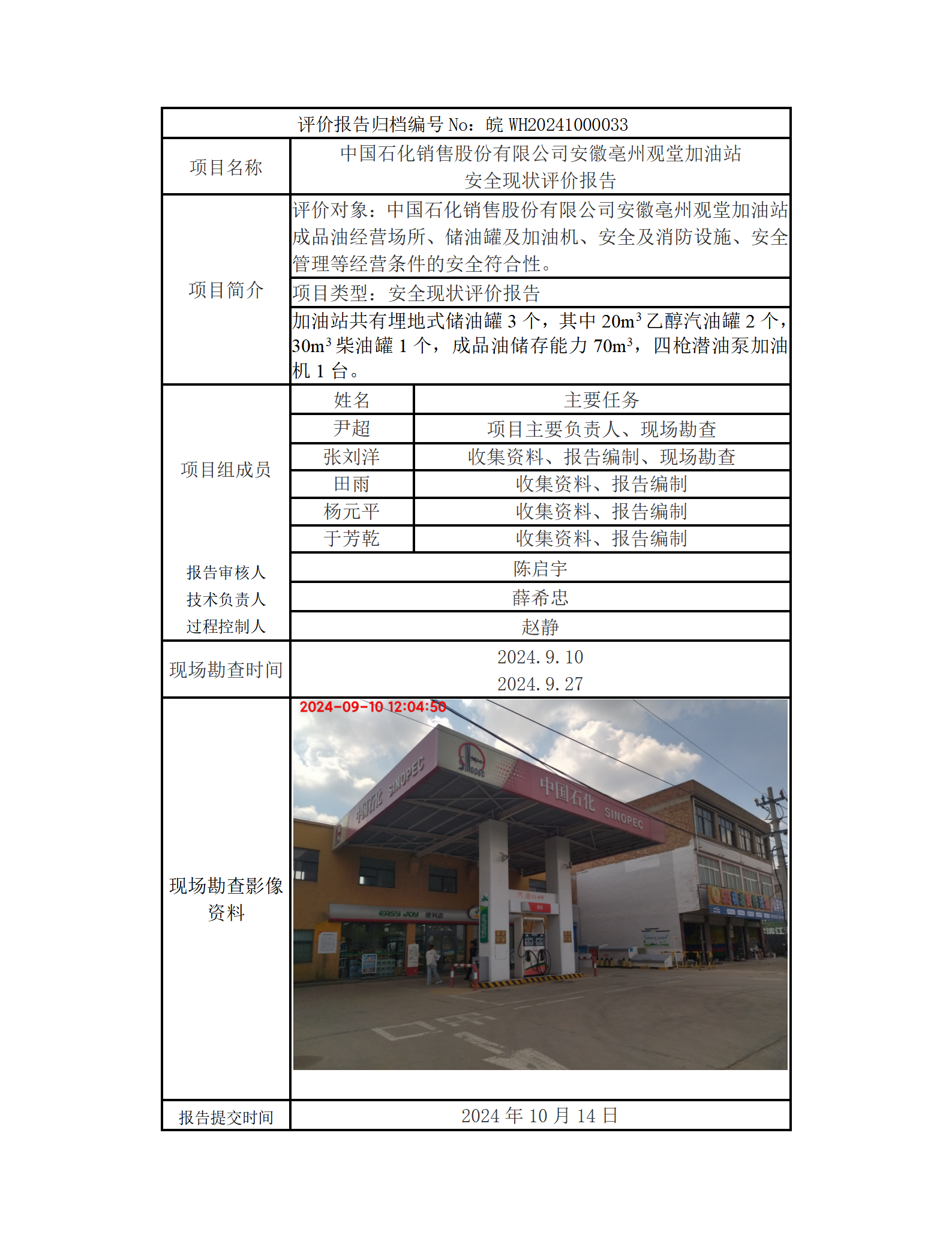 中國(guó)石化銷(xiāo)售股份有限公司安徽亳州觀堂加油站 安全現(xiàn)狀評(píng)價(jià)報(bào)告