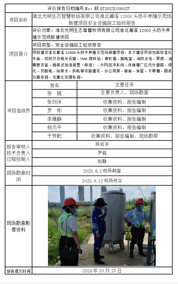 淮北光明生態智慧牧場有限公司淮北濉溪12000頭奶牛養殖示范場新建項目安全設施竣工驗收報告
