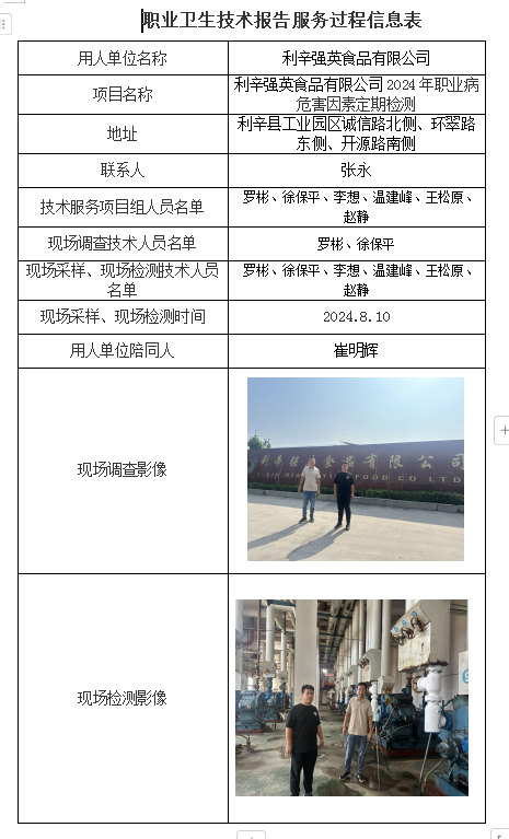 利辛強(qiáng)英食品有限公司2024年職業(yè)病危害因素定期檢測