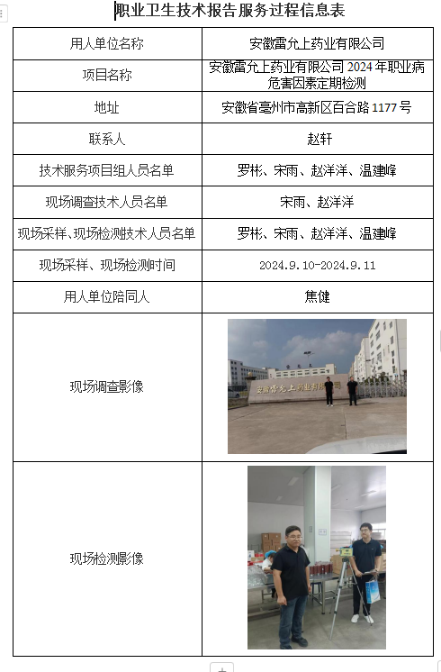 安徽雷允上藥業有限公司2024年職業病危害因素定期檢測