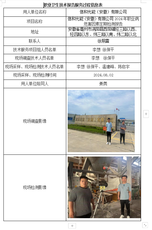 信和光能(安徽)有限公司2024年職業病危害因素定期檢測報告