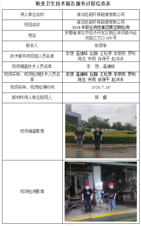 淮北旺能環(huán)保能源有限公司 2024年職業(yè)病危害因素定期檢測(cè)