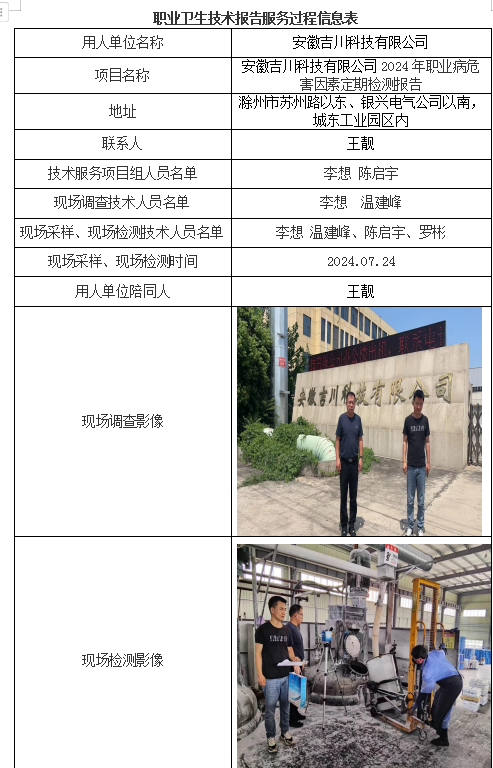 安徽吉川科技有限公司2024年職業(yè)病危害因素定期檢測(cè)報(bào)告