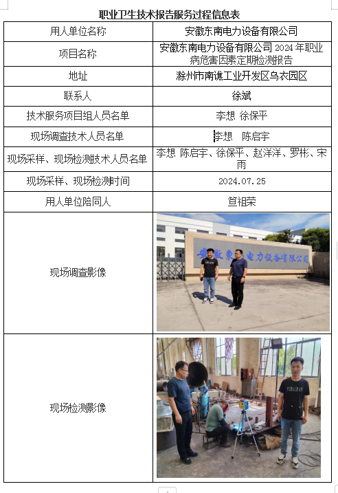 安徽東南電力設(shè)備有限公司2024年職業(yè)病危害因素定期檢測報告