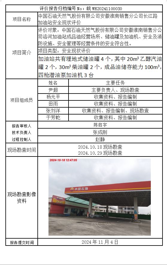 中國石油天然氣股份有限公司安徽淮南銷售分公司長江路加油站安全現(xiàn)狀評價